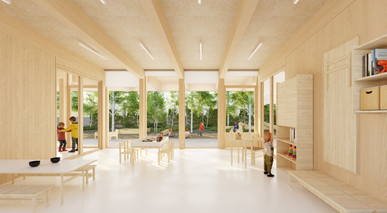 El nuevo edificio tiene una estructura hexagonal realizada en madera