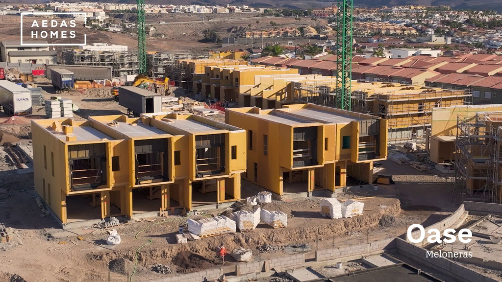 La madera toma el protagonismo en la construcción de Oase, una promoción de Aedas Homes en San Bartolomé de Tirajana (Gran Canaria) con 96 viviendas unifamiliares.