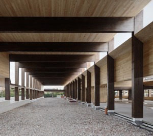 – Espacio exterior cubierto, una gran área que comunica las dos vías de acceso al nuevo edificio.